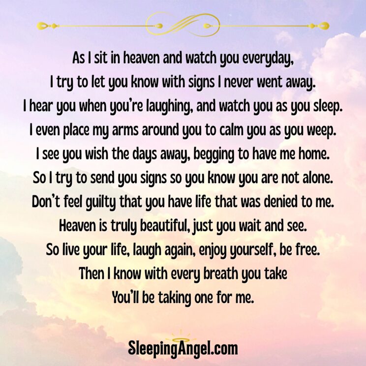 As I sit in heaven and watch you everyday,