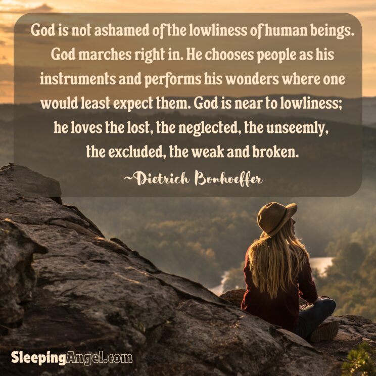 God is not ashamed of the lowliness of human beings. God marches right in. He chooses people as his instruments and performs his wonders where one would least expect them. God is near to lowliness; he loves the lost, the neglected, the unseemly, the excluded, the weak and broken.