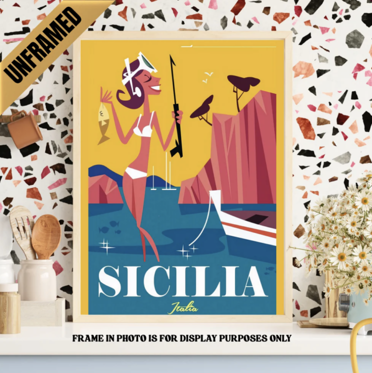 Bring the warmth of the Mediterranean to your space with this vintage‑inspired Sicilia poster, featuring a serene image of a woman basking on a sunlit beach. This minimalist yet powerful design captures the timeless charm of Italian coastal life — evoking sun, sea, and effortless elegance. Perfect for travelers, art collectors, and anyone longing for the beauty of southern Italy, this piece radiates summer nostalgia and peaceful escape.